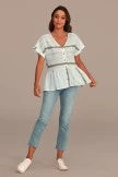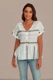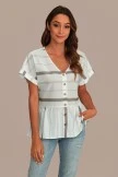 This white striped top features a short-sleeve V-neck lightweight construction that’s so versatile! Additional features include button fastening and a relaxed overall silhouette. You can complete the look with high-waisted denim shorts, slip-on sandals, and a cute crossbody bag.