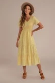 Yellow floral print girl maxi dress has a subtle ruffled skirt, v-neck, short sleeves, and flounce hem. Perfect for that anniversary or any other special occasion.